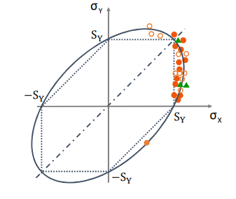 - Reality: Experimental data (orange dots) clings to the Von Mises Ellipse, making it the accurate choice for ductile metals.