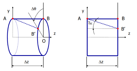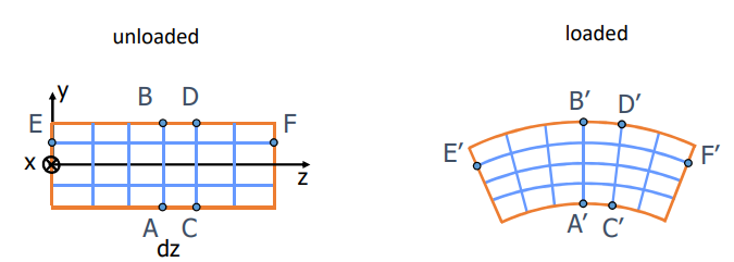 - Hypothesis: Cross-sections remain plane and parallel to each other. They move axially () but do not rotate.