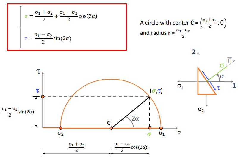 You start with the Principal Stresses () and want to find the normal () and shear () stress on a plane inclined at a specific angle .