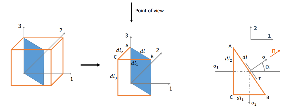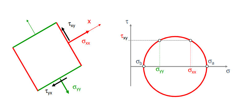 We know the stress state () on the horizontal/vertical faces. Mohr’s Circle allows us to find the stress on any inclined plane () graphically, without solving complex rotation equations.