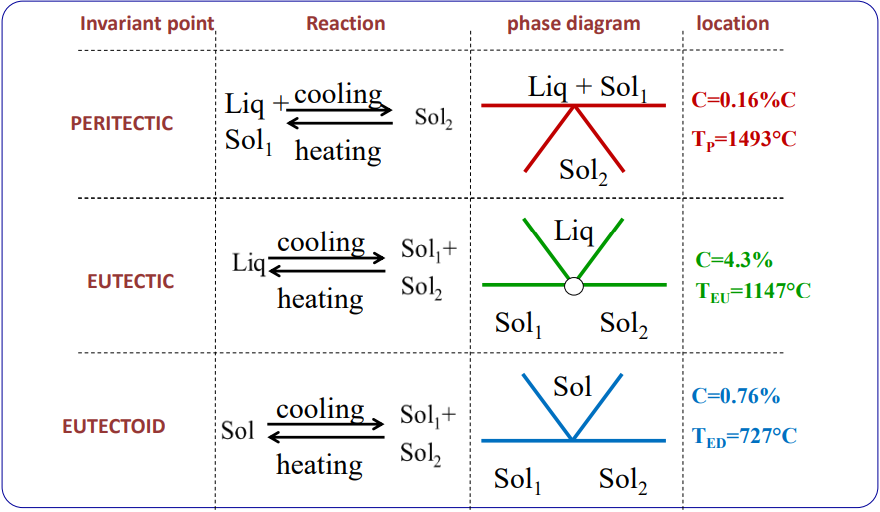- Very low solubility for carbon ()