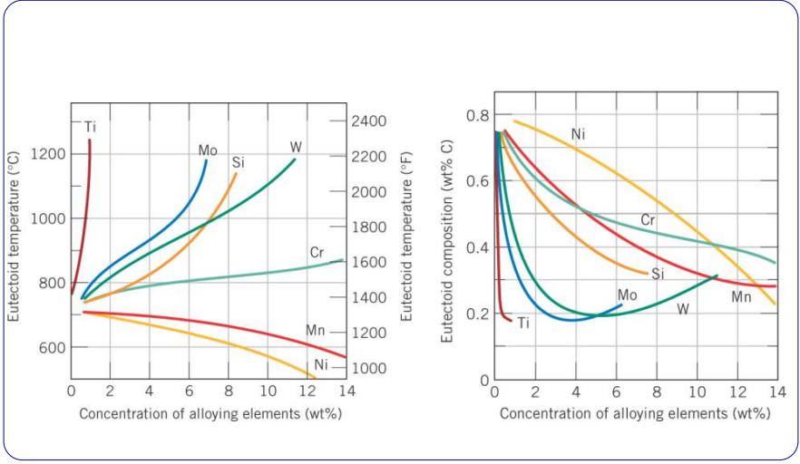 To control at what temperatures steel is stable in a certain form () we can add alloying elements to the steel. These are: