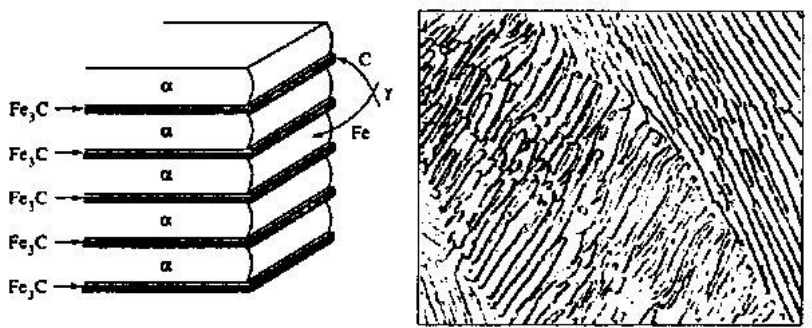- Layers of ferrite () and cementite in an alternating form