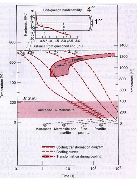 - The “hardened depth” is where the structure drops to 50% Martensite.