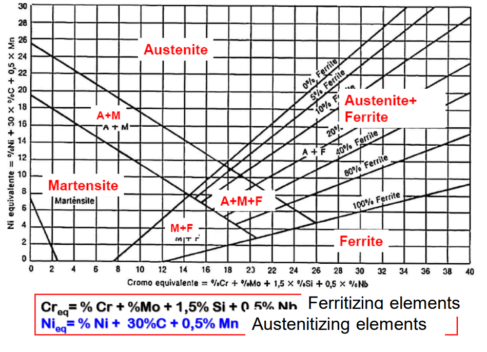 By calculating these two values, you can see if your steel will be Martensitic, Ferritic, Austenitic, or a mix (Duplex).