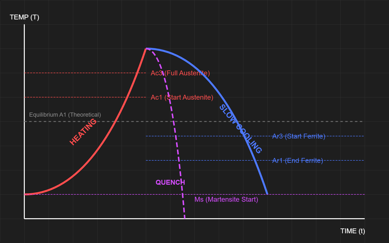 - Properties: Can be quenched and tempered! High hardness and strength. Magnetic.