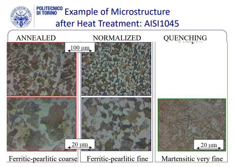 - Normalizing: Air-cooled. Slightly non-equilibrium. Moderate refinement.