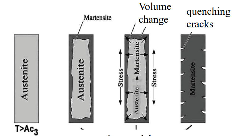 This phenomenon can cause huge internal stresses, which can lead to quenching cracks or overwhelming deformations of the object.